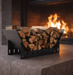 Μοντέρνα ξυλοθήκη τζακιού για κομψή και πρακτική αποθήκευση ξύλων στο σαλόνι. Μινιμαλιστικός σχεδιασμός που ταιριάζει σε κάθε μοντέρνο χώρο!